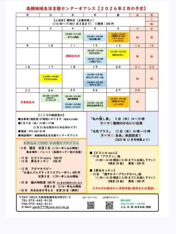 私は毎月、高槻の地域活動支援センター「オアシス」で行われている、『リカバリーミーティング』(第4火曜日の10:30~12:00)に参加しています。 1月の『リカバリーミーティング』には、当事者の方・支援者含め15人程度が参加していました。毎月テーマは異なるのですが、1月は“自分の考え方のクセ”を知り、生きづらさを生きやすさにというテーマで、みんなでワイワイ話をしました。